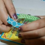- Wrap each piece of washi tape around the center of each paper clip link so that it covers the center of the paper clip.