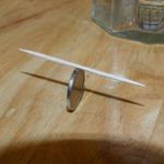 - Approach the cup with the balancing nickel and toothpick inside while holding the static charged balloon. The toothpick should spin around and around without even being touched.